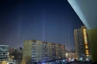 В ночном небе над Самарой появились световые колонны, похожие на северное сияние.