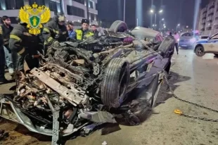 Автомобиль проигнорировал дорожные знаки, не сбросил скорость и врезался в бетонное ограждение.