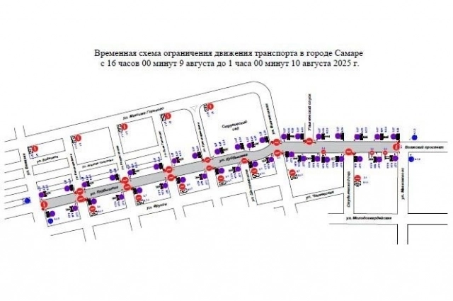 С 16:00 субботы, 9 августа до 01:00 воскресенья, 10 августа в Самаре в связи с проведением спортивных мероприятий ко Дню физкультурника ограничат движение транспорта, в том числе средств индивидуальной мобильности по улице Куйбышева, от улицы Венцека до улице Вилоновской, и по Волжскому проспекту, от улицы Вилоновской до улицы Маяковского.