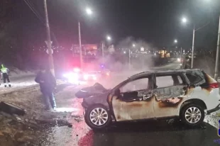 В Сызрани автомобиль врезался в ЛЭП и загорелся, есть жертвы