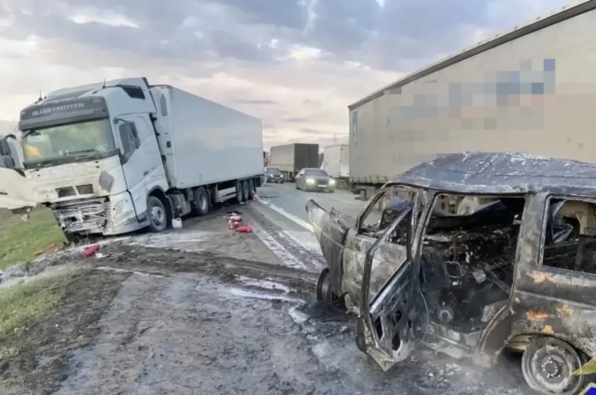 53-летний водитель отечественного внедорожника, совершая обгон без нарушения правил, выехал на встречную. Но не рассчитал и допустил столкновение с фурой. УАЗ вспыхнул. Машину сильно помяло. Мужчина, находившийся за рулём, погиб на месте.