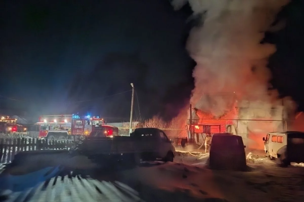 Сигнал о пожаре поступил в 21:08. По прибытии расчётов было установлено, что открытым пламенем горит гараж на площади 100 квадратных метров.