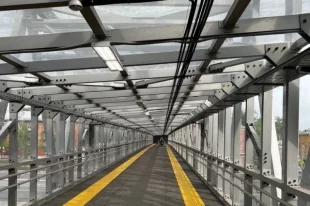 Самый длинный в России крытый пешеходный переход из алюминия не пользуется популярностью у горожан и систематически подвергается набегам хулиганов.