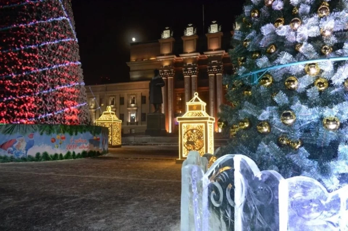 На площади Куйбышева в этом году традиционно будет размещен ансамбль из семи ёлок. Высота самой большой составляет 25 метров.