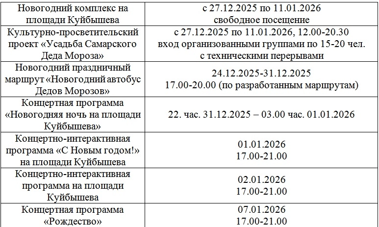 На главной площади города посетителей также ждёт несколько сюрпризов. Там разместятся торговый городок с сувенирами и угощениями, три ледовых катка, зона спортивных активностей «Самара в движении. Зима».