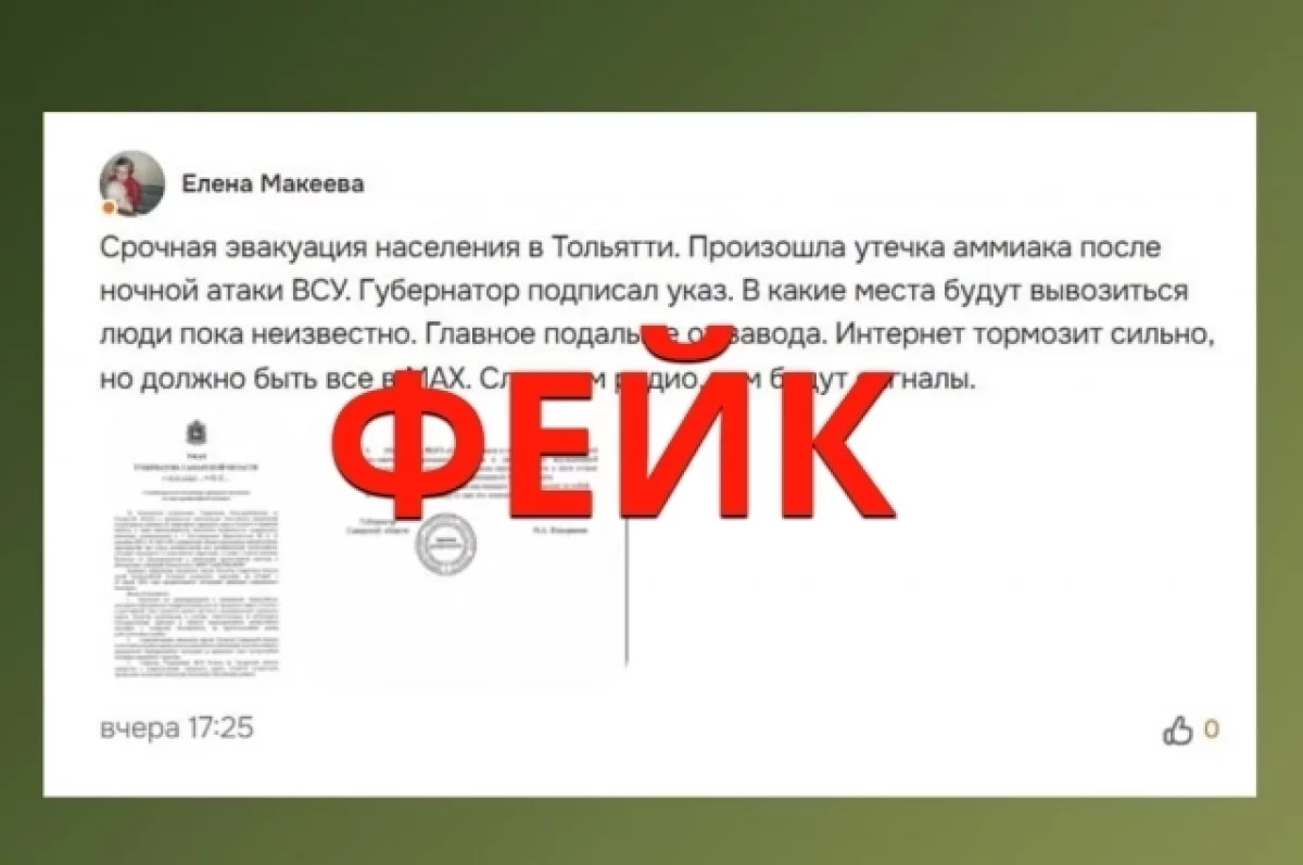 В Тольятти в социальных сетях и комментариях начала распространяться информация о якобы срочной эвакуации жителей из-за утечки аммиака после ночной атаки. Пользователям рассылают документ, оформленный как официальный указ губернатора. Однако, как выяснилось, речь идёт о фейке.