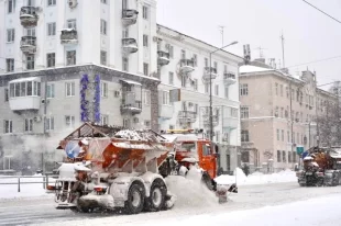 Специалисты очищают проезжую часть и обрабатывают её противогололёдными реагентами для обеспечения безопасного движения.